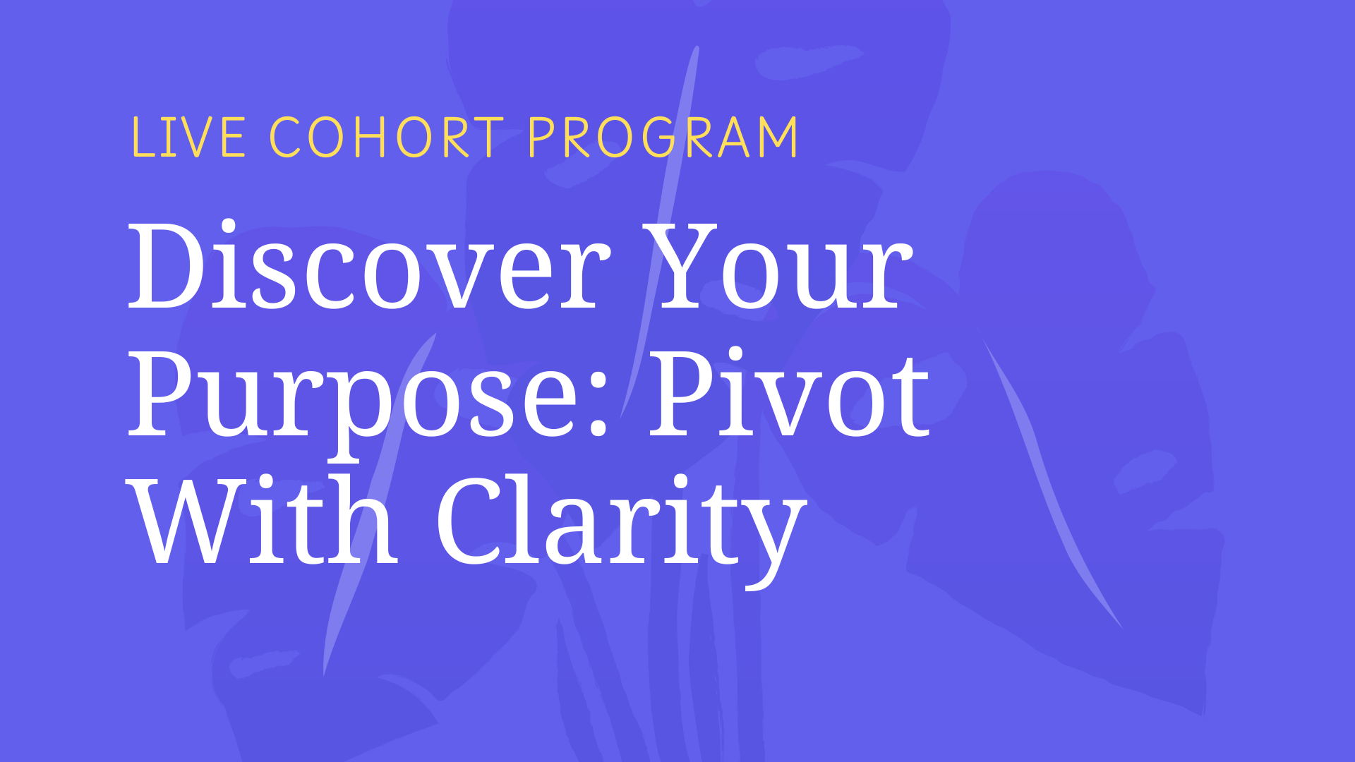 10-week framework to help you rediscover your purpose, explore new career paths, switch careers, land a new role or start a business. You'll release past career set-backs, stop over-identifying with roles, reconnect with your true self, awaken your joy and intuition, clarify your values and ideal career vision.Â